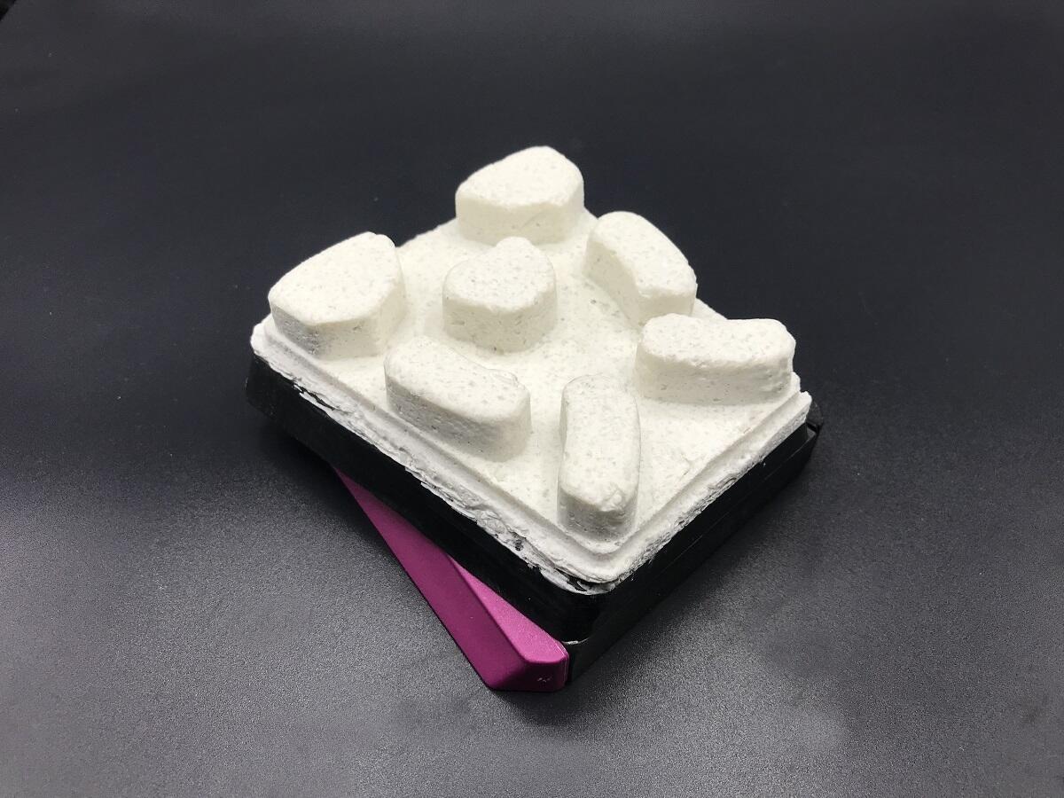 L’altezza doppia del supporto permette di lavorare con l’utensile fino alla fine. Infatti l’abrasivo si consuma perfettamente e completamente senza modificare i parametri della macchina.