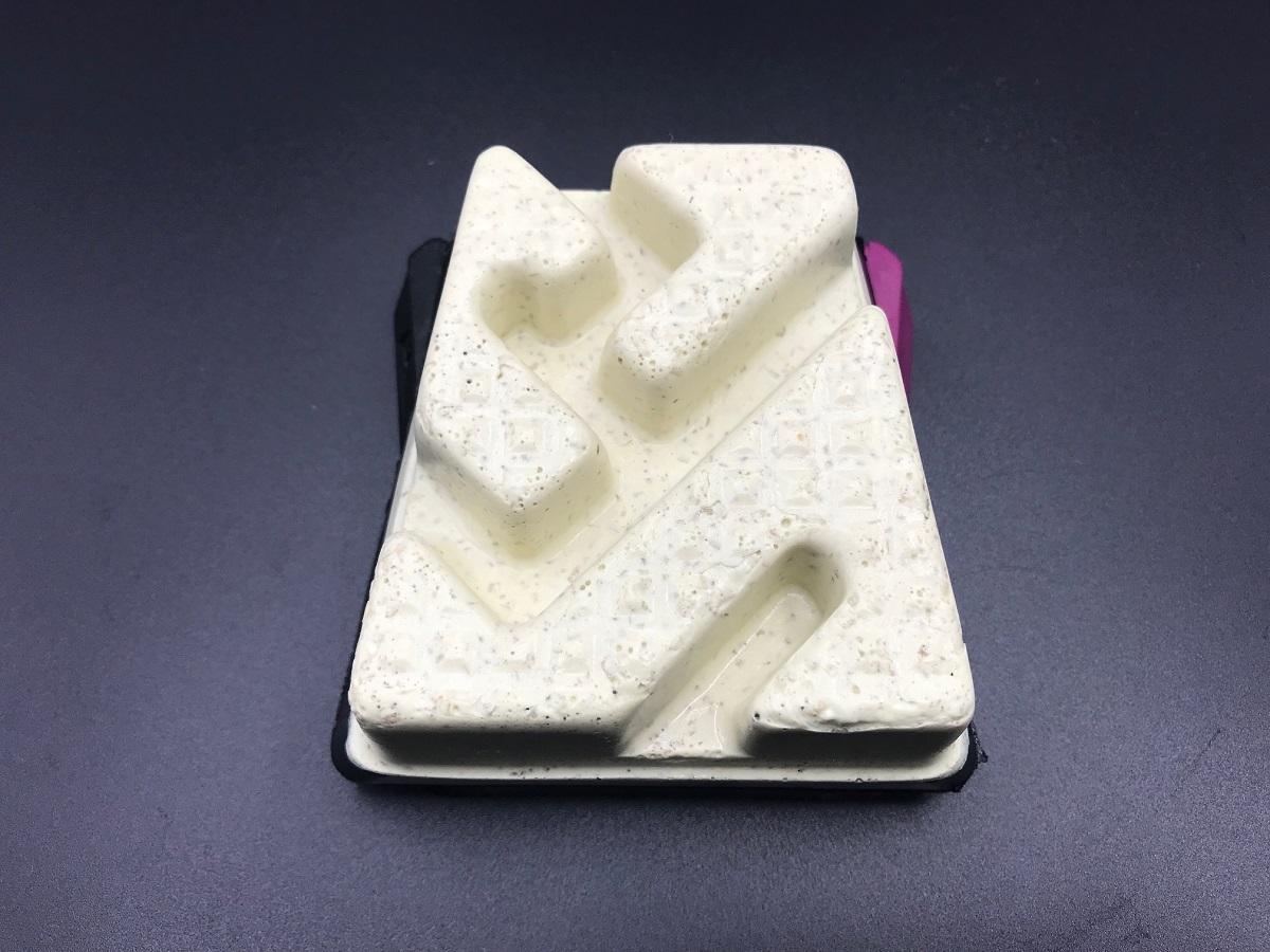 L’altezza doppia del supporto permette di lavorare con l’utensile fino alla fine. Infatti l’abrasivo si consuma perfettamente e completamente senza modificare i parametri della macchina.